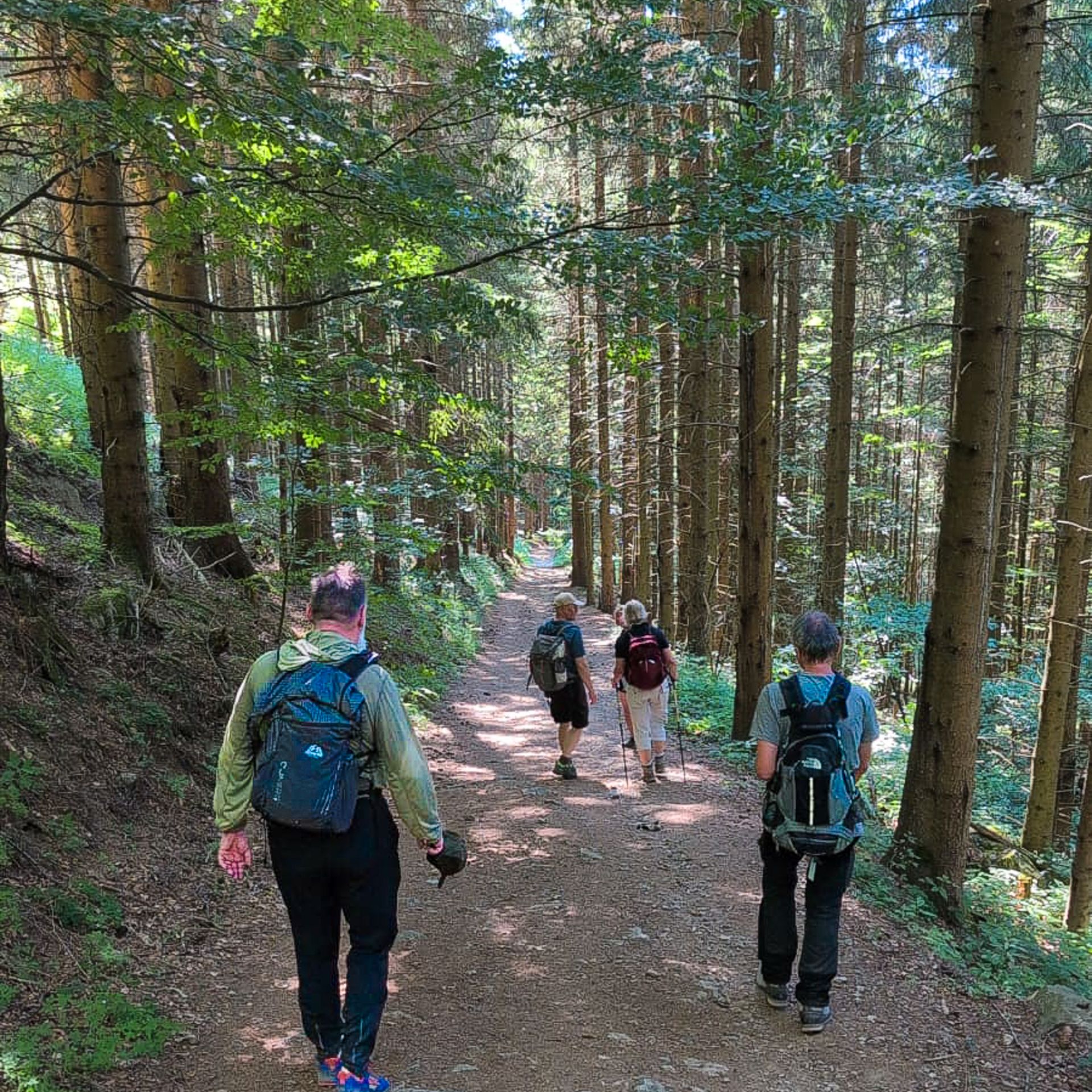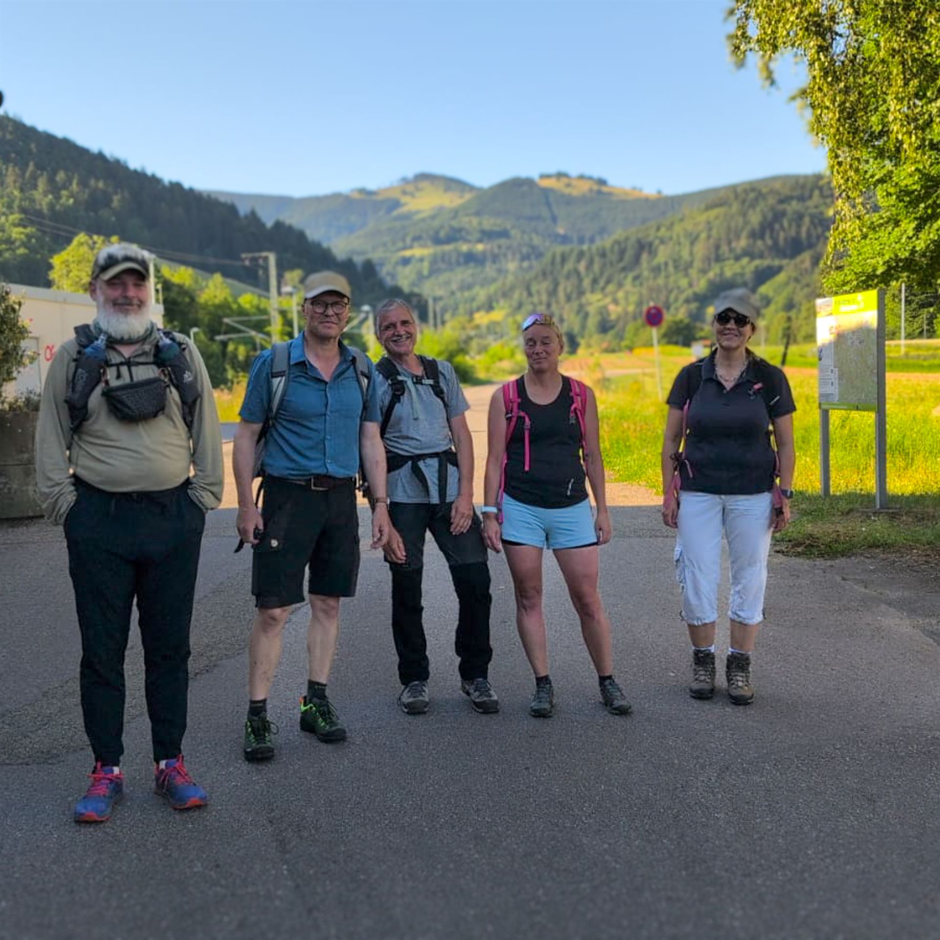 Eine erfrischende Abwechslung bot die Wanderung durch die Ravennaschlucht. Trotz des touristischen Treibens war es eine willkommene Abkühlung, bevor die Gruppe dann das Ravennaviadukt und historische Steigenwirtshaus Hofgut Sternen passierte. Hier wartete ein kleiner Verpflegungsstopp mit kühlen Getränken und frischem Obst. Die kurze Pause war genau das Richtige, um Kraft für den steilen Aufstieg zu den Alpersbacher Höhen zu tanken. Unser Guide Matthias Schopp war von der Entschlossenheit der Wanderer begeistert – und das zu Recht! Die Hitze machte den Aufstieg zu einer echten Herausforderung, doch die Gruppe bewies bewundernswerte Ausdauer und Teamgeist.