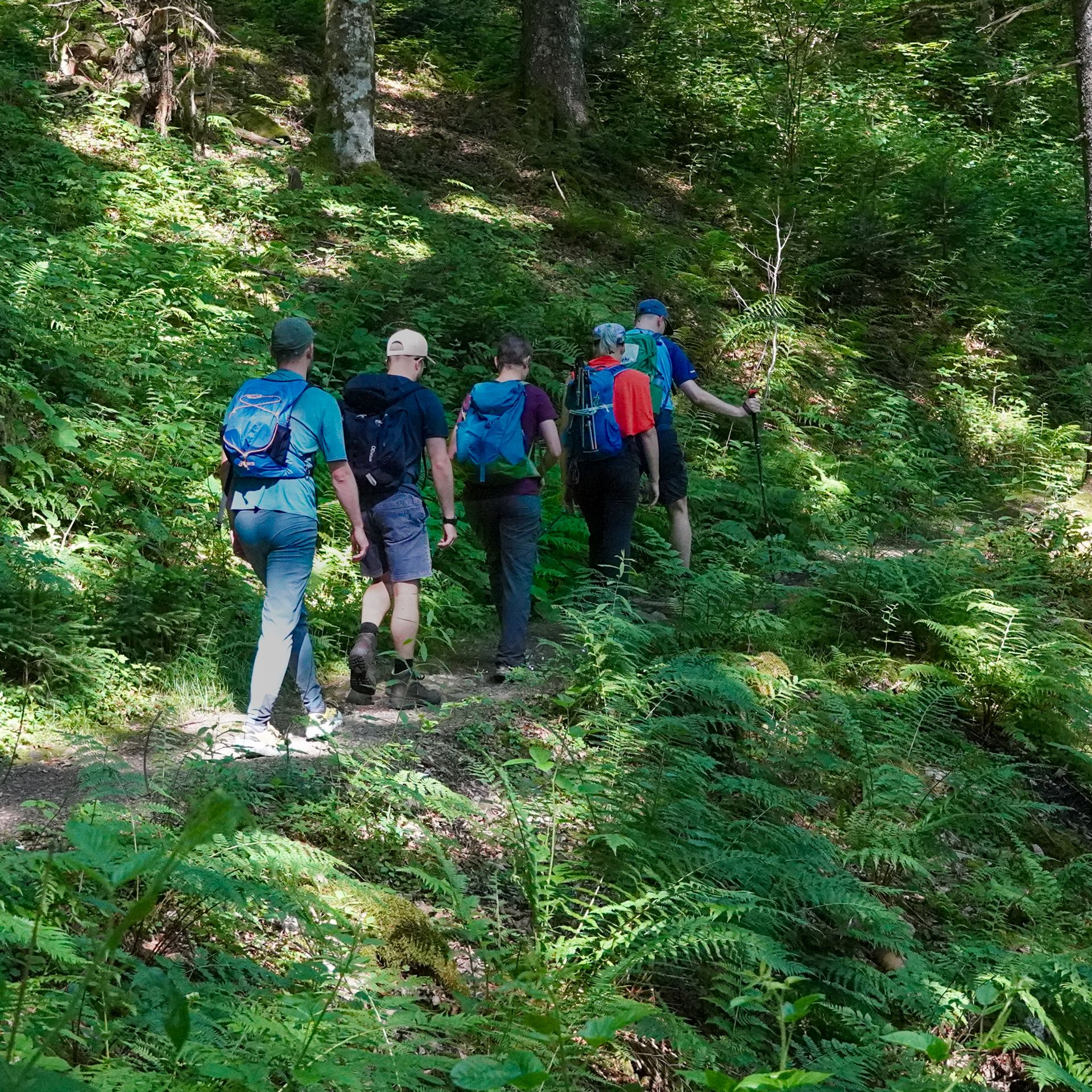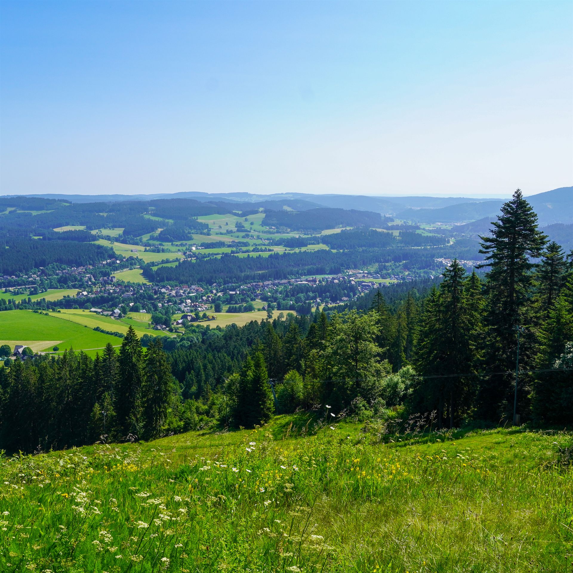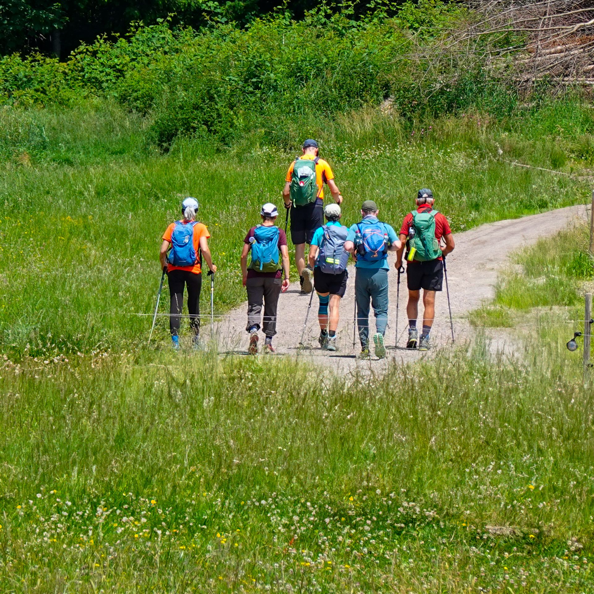 Frisch, motiviert und voller Tatendrang fiel um 9 Uhr der Startschuss. Die Wandergruppe marschierte strammen Schrittes Richtung Windeckkopf – das erste Highlight der Tour. Der Ausblick von oben? Einfach grandios! Auf der Höhe und im Schatten von Fichten und Tannen ging es weiter bis zur nächsten kurzen Verschnaufpause an der Grillhütte Rinken. Der nächste Abschnitt hatte es in sich: ein schweißtreibender Aufstieg mit viel Sonne auf den Feldberg-Gipfel, Baden-Württembergs höchsten Punkt.