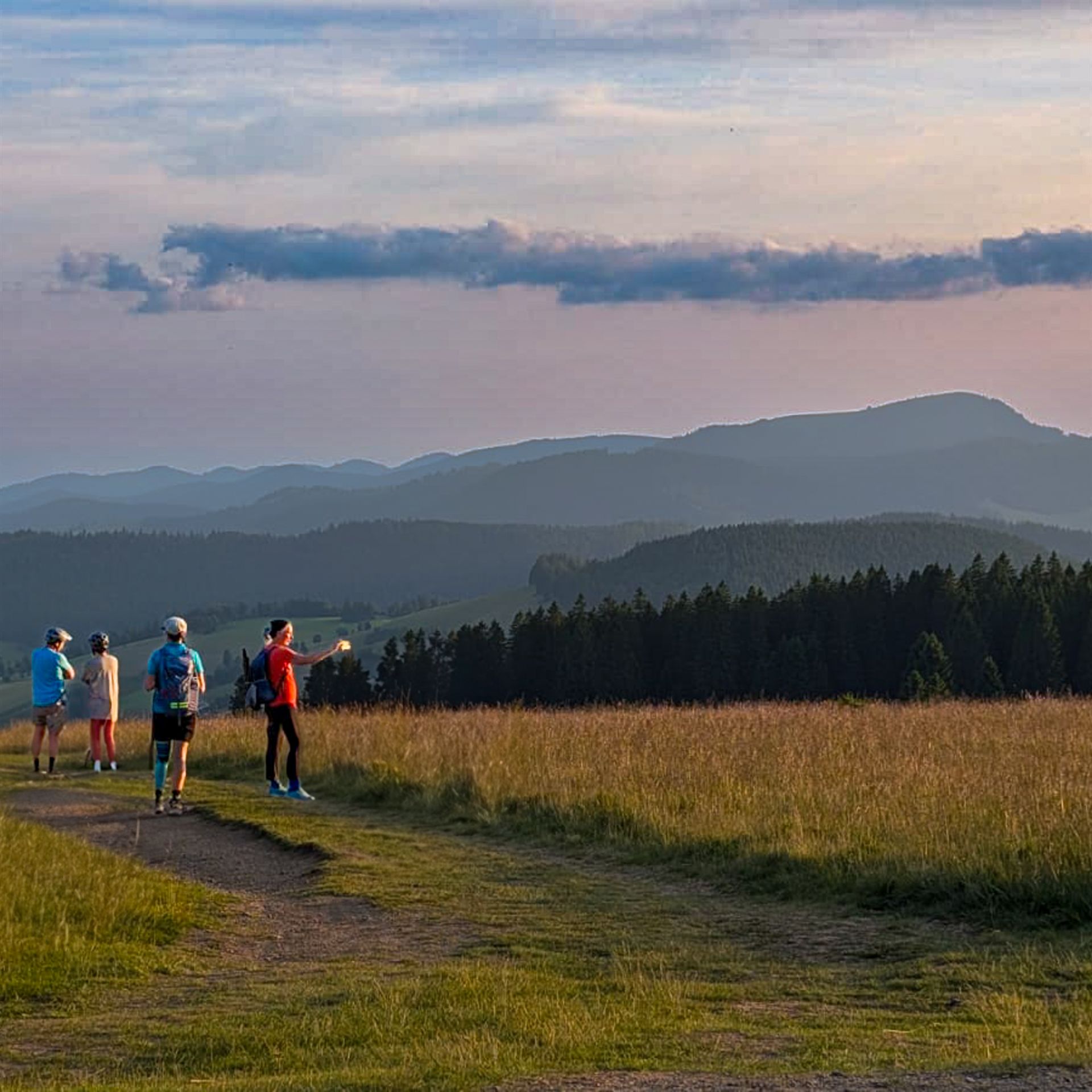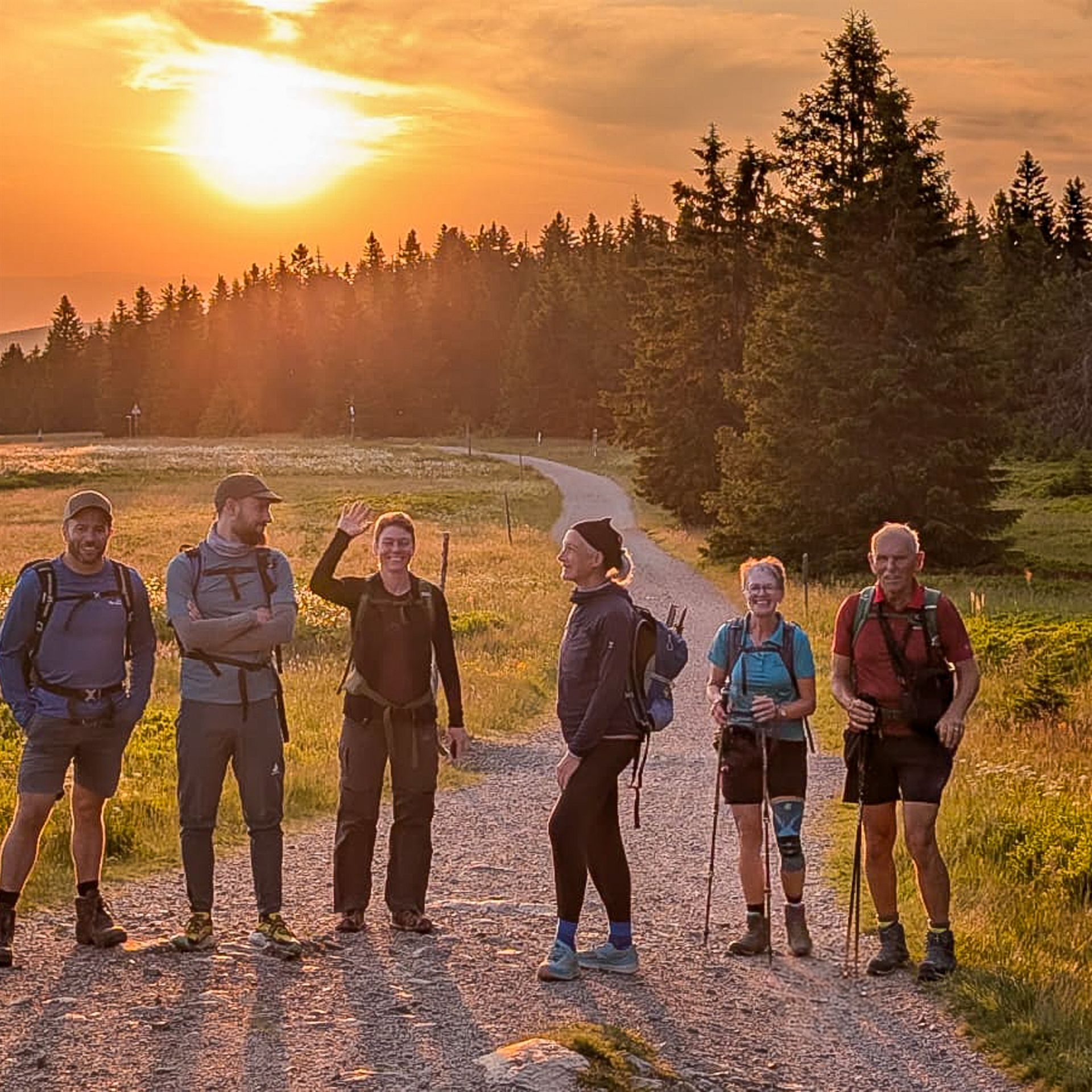 Dort gab es ein wahrlich köstliches Abendessen und ein gemütliches Beisammensein, welches im späteren Verlauf der Wanderung dann noch durch einen faszinierenden Sonnenuntergang am Stübenwasen gekrönt wurde. Die kühle Abendluft, die Magie des Lichts und das Gefühl, gemeinsam unterwegs zu sein – das sind Momente, die bleiben.