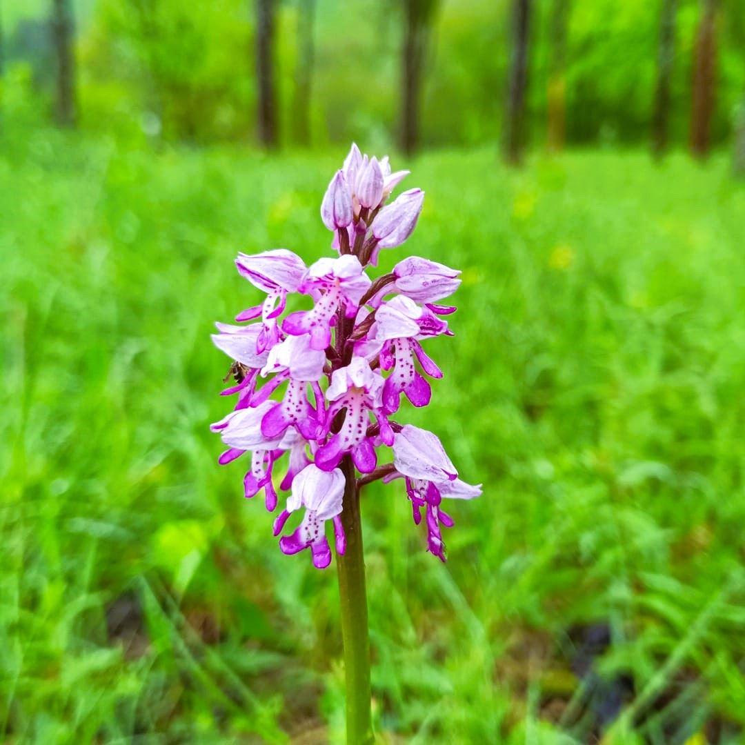 Durch das Arboretum des Lilientals führt uns die Route weiter aufwärts zu den Mammutbäumen. Am Wegesrand blühen unzählige Knabenkräuter, die zu den Orchideen zählen. Leider sind keine Botaniker unter uns, sodass wir hin und wieder das digitale Gehirn zur Recherche der Pflanzennamen bemühen, teils mit recht lustigen Ergebnissen. Bei der Adlerhorsthütte genießen wir erstmals ein wenig Aussicht. Etwaige Bedenken ob des miesen Wetters sind mittlerweile komplett verflogen. Alle sind froh, sich nicht haben abschrecken zu lassen. So sind eben die ersten Schritte oft die schwersten. An dieser Stelle ein dickes Kompliment an die gesamte Gruppe, verbunden mit einem herzlichen Dankeschön, dass ihr so gut harmoniert und alles ohne den Hauch eines Murrens durchgezogen habt!
