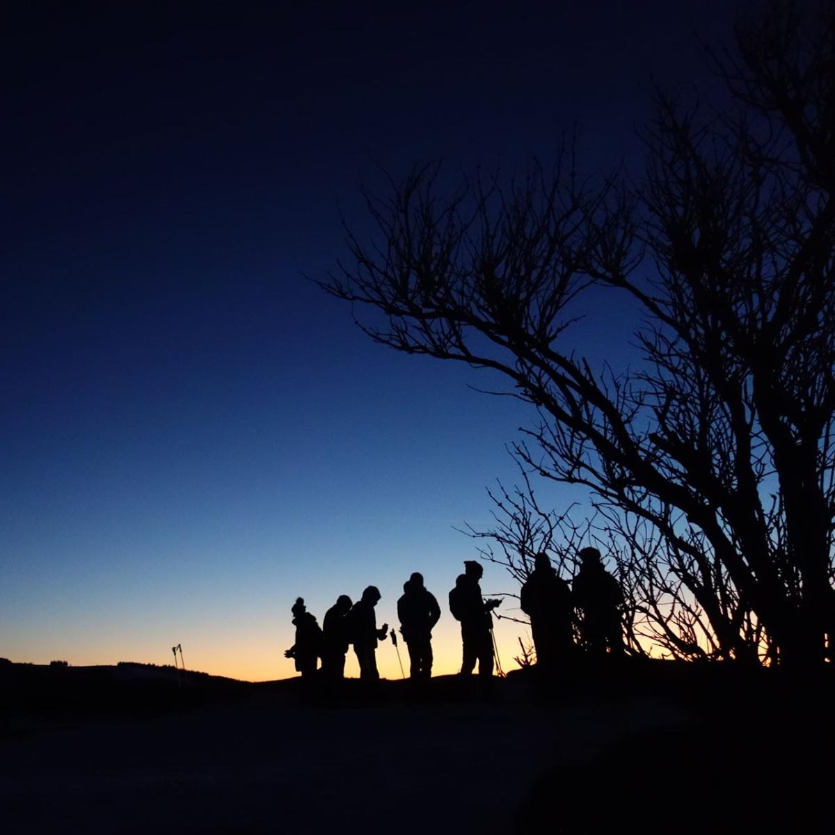 Als der Wecker klingelt ist es noch stockdunkel. Im Winter soweit nichts Ungewöhnliches, aber heute ist es schon ein wenig arg früh. 4:30 Uhr zeigt das piepsende Gerät, als ich mich widerwillig aus dem mollig warmen Bett schäle. Draußen ist es bitterkalt, minus 12 Grad Celsius, aber immerhin scheint es windstill zu sein. Auf die Fichtenzweige hat sich über Nacht eine hauchdünne Neuschneeschicht gesetzt, die nun malerisch im Schein der Straßenlampen glitzert. Beste Bedingungen also für die anstehende Tour. Und die wird etwas ganz Besonderes: Auf meine Gäste und mich wartet der erste Hochschwarzwälder Winter-Halbmarathon auf Schneeschuhen. Seit einigen Jahren führen wir nun bereits Marathonwanderungen durch. Für die kalte Jahreszeit sind Distanzen von über 40 Kilometern selbstredend utopisch, daher haben wir uns heute die halbe Strecke vorgenommen. Dies bedeutet im Winter aber immer noch eine sinnvolle Ganztagsbeschäftigung. Und genau darin liegt der besondere Reiz unserer Unternehmung, denn wir wollen den Schwarzwald einen kompletten Tag lang erleben, von Sonnenaufgang bis -untergang.