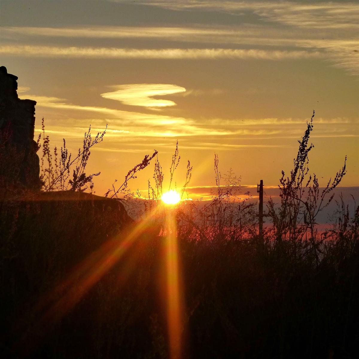 Nebenbei beginne ich die zweite Hälfte meiner Tour. Die üblichen Wehwehchen stellen sich nach 60 km natürlich auch allmählich ein. Hier und da zwickt und scheuert es. In Gutach lasse ich das enge und dunkle Simonswälder Tal hinter mir und betrete das Elztal. In den Ortschaften gilt es, gut auf die spärlichen Markierungen zu achten. Unspektakulär laufe ich durch Waldkirch. Hier und da brennt noch Licht, auf der Straße ist jedoch niemand mehr unterwegs. Kein Wunder, es ist kurz nach 3 Uhr. Das Suchen und Finden der Wegmarkierungen hält mich zum Glück vom Nachdenken ab, sodass sich auch keine tiefe Müdigkeit einstellt. Während ich am Ufer der Elz entlang schlendere umgibt mich inmitten der Stille eine tolle Szenerie: Vor mir der Vollmond auf einer Wolkenbank während hinter mir ein Silberstreifen den neuen Tag ankündigt. Ein nächster kleiner Hügel durchbricht die Monotonie der Flachstrecke, es geht hinauf zur Ruine der Severinskapelle nebst herrlichem Pausenplatz. Obwohl es noch kühl ist nutze ich die Gelegenheit, mich der Bekleidung für die Nacht zu entledigen. Vermutlich würde der neue Tag noch mehr Hitze bringen als der gestrige, schließlich führt die Route nun in Richtung Kaiserstuhl.