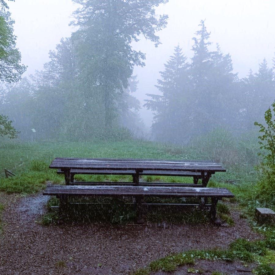 Nun sind wir aber hier und wollen eine achtstündige Tour auf Schusters Rappen antreten. Tapfer trudeln nach und nach alle Teilnehmer ein. Das Regenradar verspricht, dass es bald abtrocknen soll, und so brechen wir mit gemischten Gefühlen auf in Richtung Kaiserstuhl. Bewaffnet mit Schirm und Regencape tauchen wir durch eine Hohlgasse in das kleine Vulkangebirge ein. Anschließend folgt eine Passage über die typischen Rebhänge, die hier in Form großer Terrassen bewirtschaftet werden. Das ringsherum graue Ambiente verleitet zum gepflegten Sarkasmus: „Badischer Wein – von der Sonne verwöhnt“, oder wie hieß es seinerzeit in der Werbung? Wir sind eine halbe Stunde unterwegs, und eine Sturmböe zerreißt mir den Regenschirm. Glücklicherweise erreichen wir kurz darauf einen kleinen Unterstand am Fischweiher im Liliental, wo das Gestänge des Schirms seine letzte Ruhestätte in der aufgestellten Mülltonne findet. Mittlerweile ist es leidlich trocken und die Stimmung bei allen richtig gut. Das dürfte auch an der mitgebrachten Schokolade und den urigen Waldpfaden liegen, von denen der Kaiserstuhl so viele zu bieten hat.
